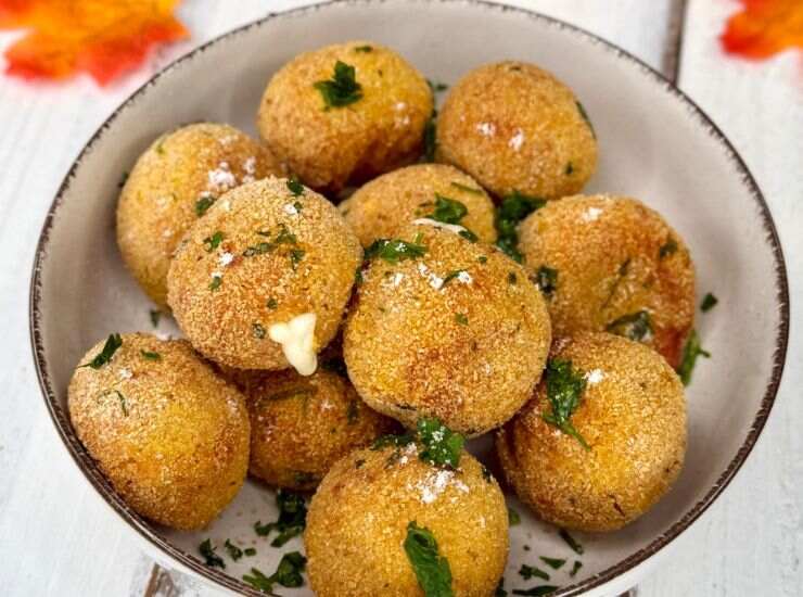 La zucca viene cotta leggermente per ottenere una consistenza soffice e vellutata, poi unita a vari ingredienti per creare un impasto gustoso e cremoso. Il vero e proprio tocco magico è l’utilizzo di un cubetto di provola nascosto nel centro, che forma un cuore morbido dal sapore inebriante. La cottura nella friggitrice ad aria, rende queste polpettine dorate all’esterno e morbide all’interno, senza bisogno di friggere in olio e mantenendo tutto il gusto con pochi grassi. Molto semplici da preparare, queste polpette piaceranno proprio a tutti!